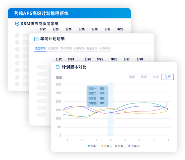 快速計(jì)算出每天/每個(gè)產(chǎn)品線/每種產(chǎn)品等方面可執(zhí)行的生產(chǎn)計(jì)劃、備料計(jì)劃、工序計(jì)劃和資源使用計(jì)劃表。
