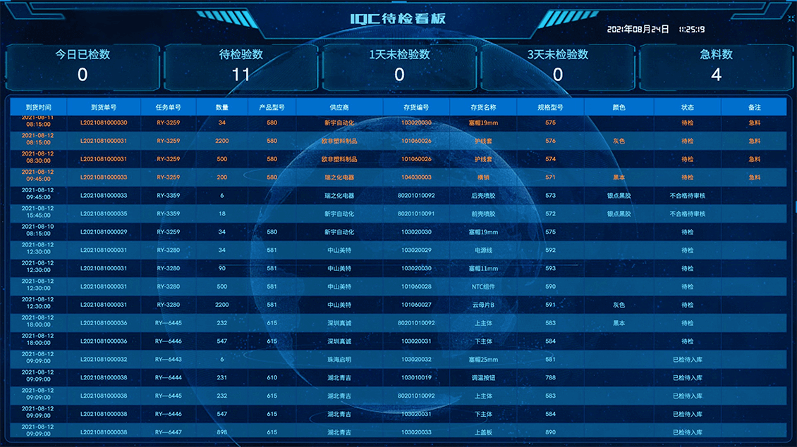 通過中央大屏幕,將涉及生產(chǎn)的各項信息匯總到一