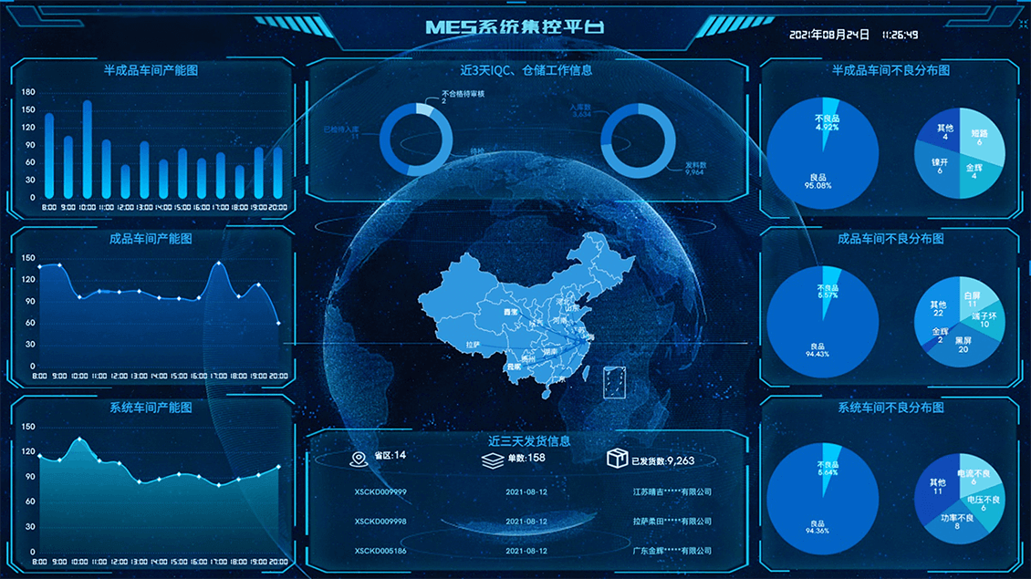 生產(chǎn)現(xiàn)場的每一個車間,每一道工序,每一條生產(chǎn)線,所有的生產(chǎn)情況、良品情況、設(shè)備負(fù)荷情況等,一目了然
