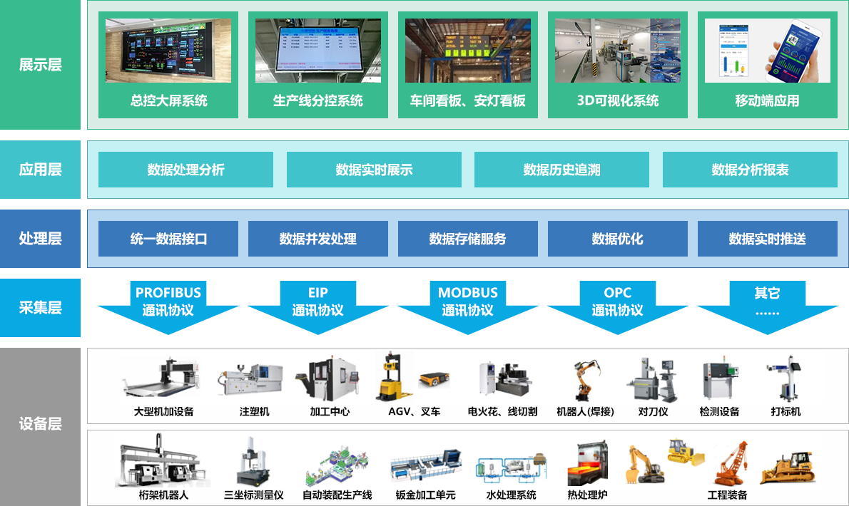 能夠采集PLC設(shè)備、數(shù)控機床、檢測儀表、普通機床、PC上位機等工業(yè)設(shè)備,與MES無縫集成