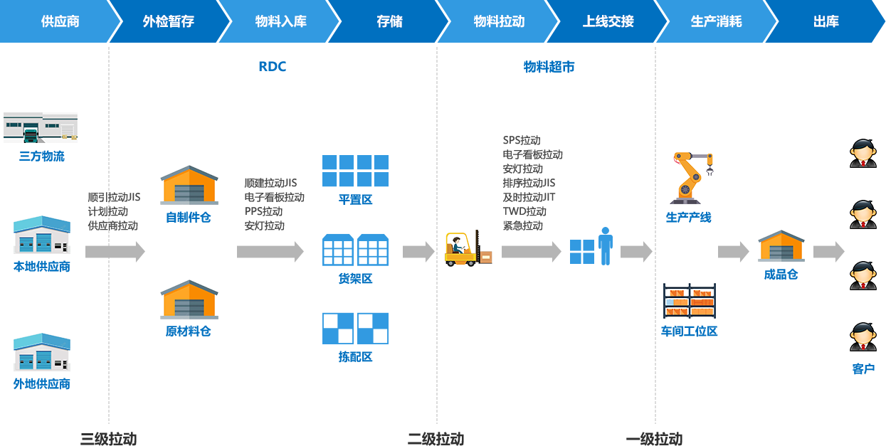 支持多種供給方式作業(yè):PPS/KIT/EO/KANBAN;現(xiàn)場100%無紙化作業(yè),系統(tǒng)任務(wù)指導(dǎo)現(xiàn)場作業(yè)