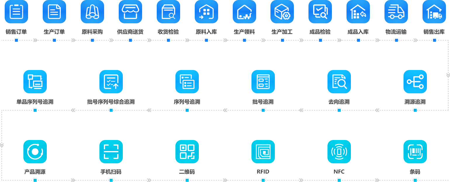 基于二維碼方式,將產品生產過程中大量離散的人、機、料、法、環(huán)信息進行系統(tǒng)性收集與關聯(lián),達到生產過程透明化,產品可追溯化的效果